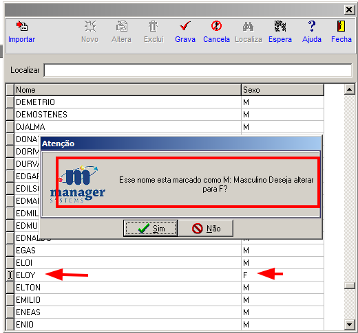 Caso o nome esteja associado a um sexo incorreto, será possível realizar a alteração diretamente no cadastro.