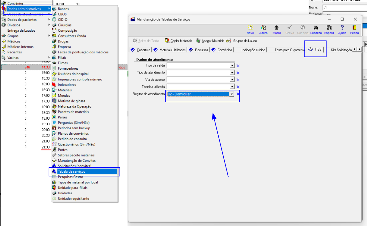 Criada funcionalidade que preenche automaticamente o Regime de Atendimento na aba TISS, conforme a configuração definida no serviço do convênio.