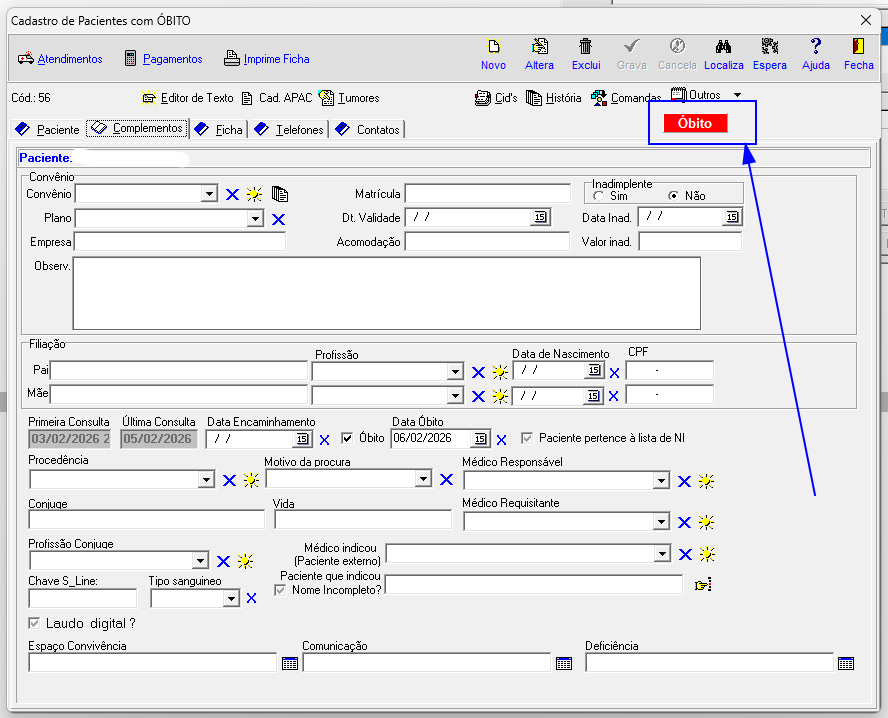 4 - Cadastro de Pacientes - Óbito