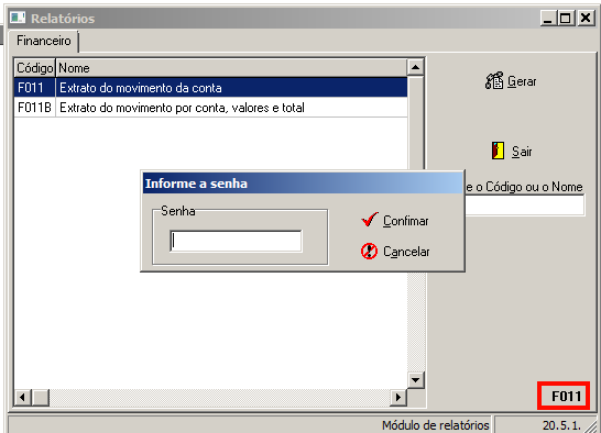 Relatório F011 gerado com opção de exportação para Excel e foi incluída nova coluna com o número da autorização.