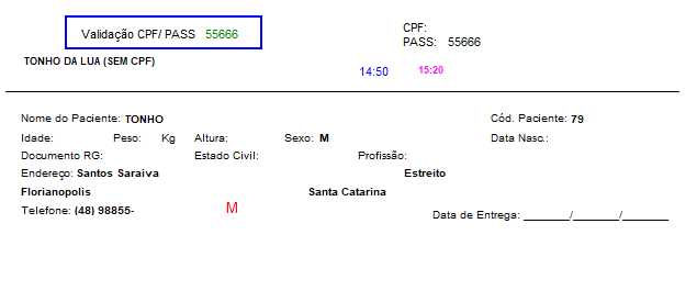 Campo liberado na funcionalidade de impressão de ficha para exibir o número do passaporte do paciente.
