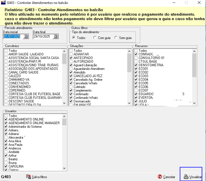 Ao gerar o relatório G403, os atendimentos vinculados ao plano configurado deixam de ser exibidos.