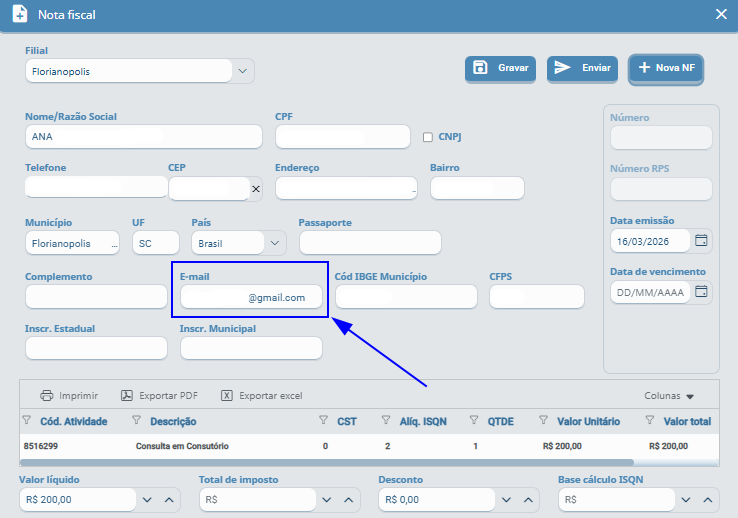Foi realizada a alteração no nome do campo na tela de Nota Fiscal, passando de Endereço para cobrança para E-mail, tornando a identificação mais clara e adequada à sua finalidade.