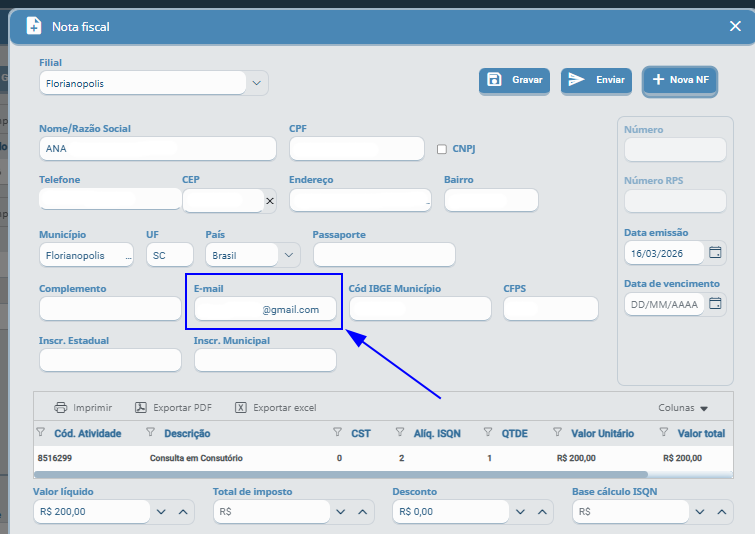 Foi ajustado o nome do campo na tela de Nota Fiscal do SisWeb, passando de “Endereço para cobrança” para “E-mail”.